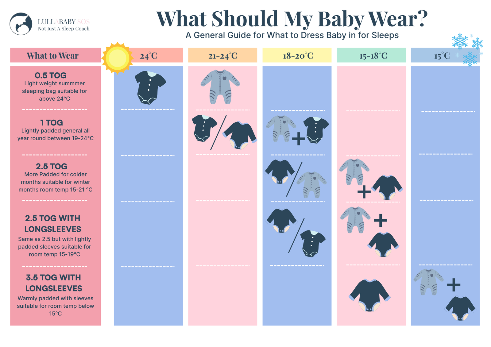 I’ve made it easy for you. Download my free visual guide on how to dress your baby for sleep based on temperature and TOG rating: